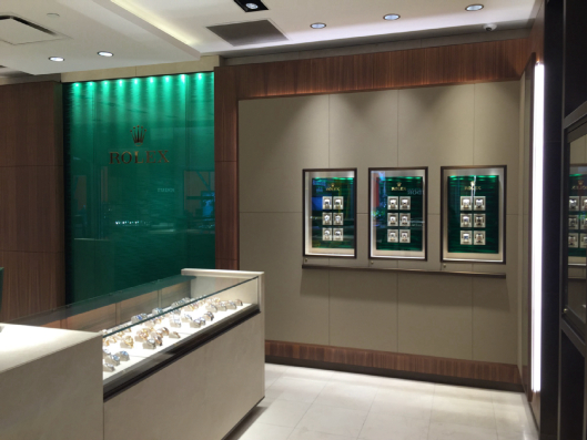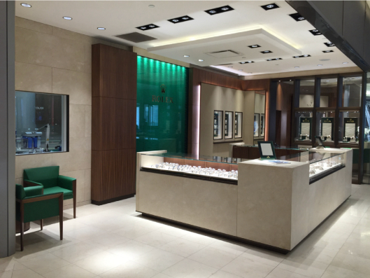 The Ben Bridge Jeweler store features a classic and luxurious interior, combining elegant lighting, high-quality materials, and meticulously arranged displays to highlight its exquisite jewellery and timepieces.