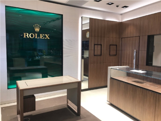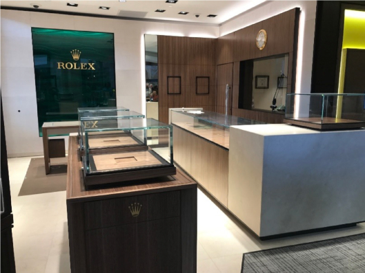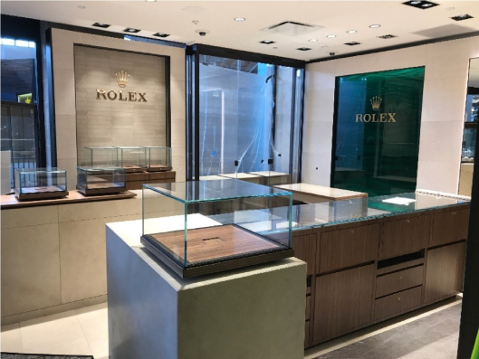The Ben Bridge Jeweler store showcases a timeless interior with elegant lighting and fine material finishes, creating a warm and luxurious atmosphere that highlights its exquisite collection of jewellery and timepieces.