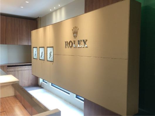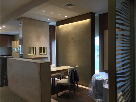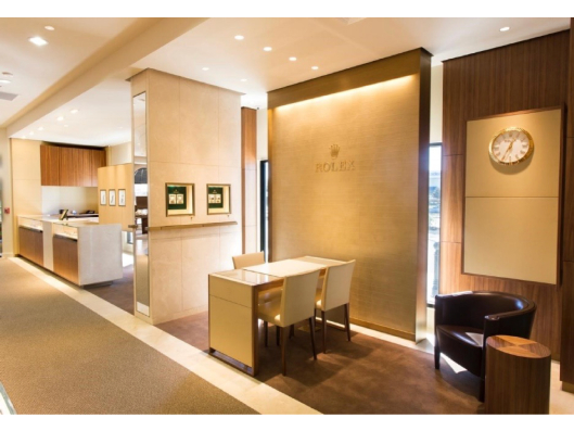 Lee Michaels Fine Jewelry features a sophisticated interior with sleek displays and warm lighting that accentuate its fine pieces. The design blends classic luxury with contemporary elegance, offering customers a refined and memorable shopping experience.