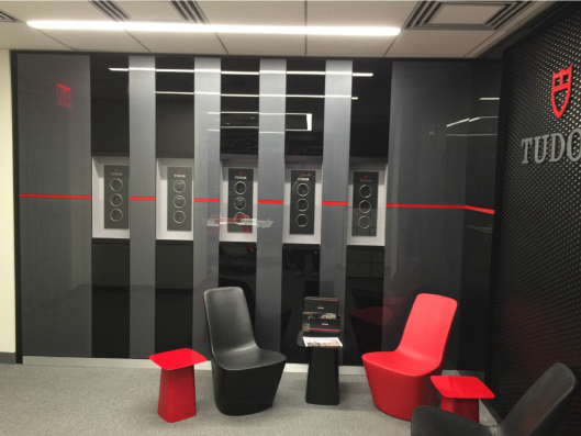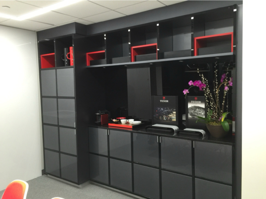 The Tudor Office Fixtures feature a sleek and contemporary design that reflects the brand’s timeless sophistication. With refined materials and precision detailing, the space embodies professionalism and modern luxury, creating an inviting environment that aligns with Tudor’s distinguished identity.