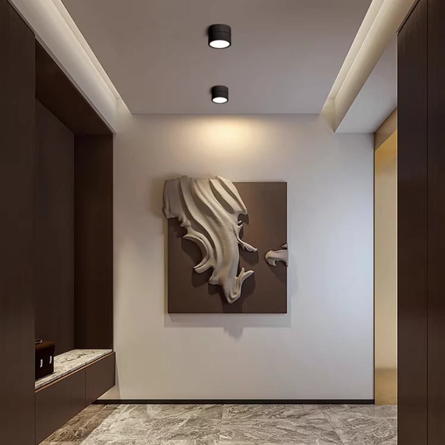 Unlike recessed fittings, surface mount LED ceiling lights install directly onto the ceiling. This makes them ideal for spaces without false ceilings or where cutting into the ceiling is not possible. The compact cylindrical design also gives a sleek architectural look that blends easily with modern interiors.