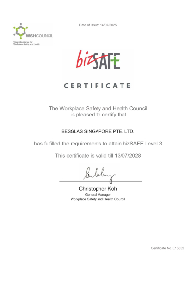 With over two decades of industry experience and multiple accreditations, Besglas has earned a reputation for reliable service excellence and customer-first solutions in Singapore