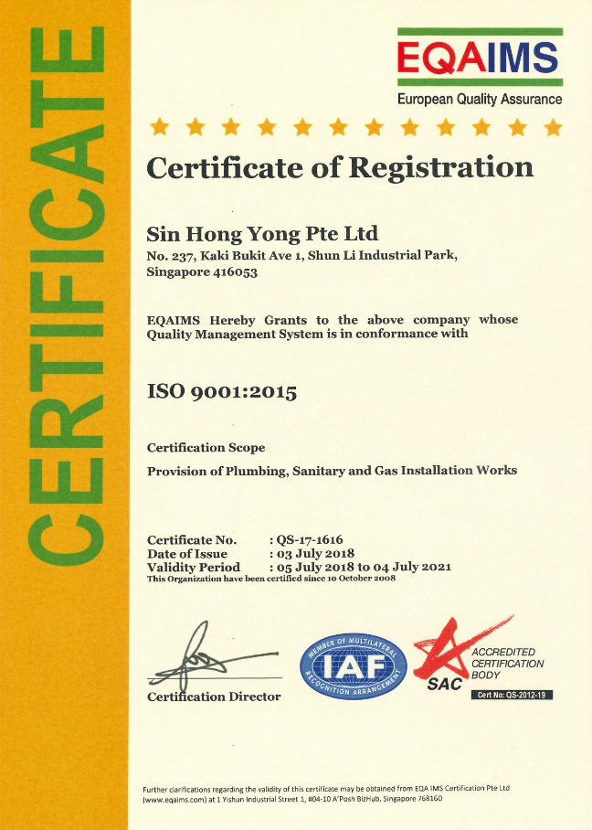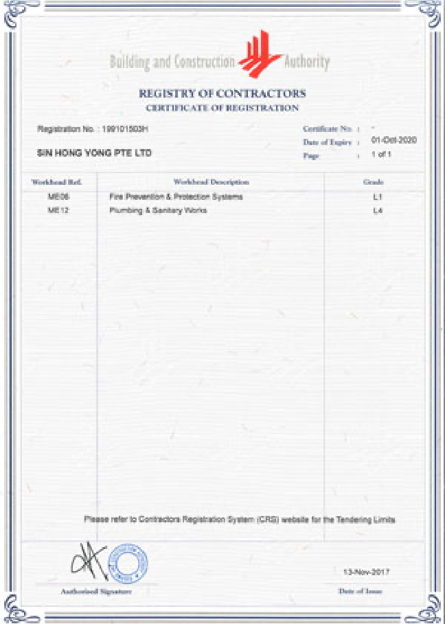 Established in 2000, Feng Plumbing Pte Ltd is a Building & Construction Authority (BCA) registered contractor specializing in Plumbing & Sanitary Installations, PUB Water Main Installations, Gas Piping, Fire Protection Systems, and Minor Sewer Works.