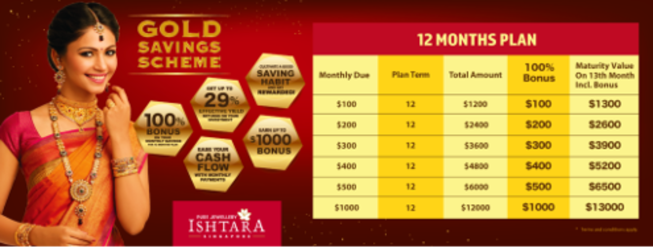 Yes. On completion, you will receive a one-month bonus. For example, if you contribute $1,000 per month, you will save $12,000 over 12 months. Upon completion, Ishtara will add $1,000 as a bonus, giving you a total of $13,000 to redeem in jewellery.