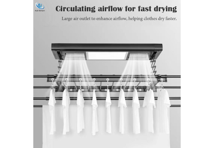5. For safe operation, always distribute clothes evenly on both sides of the drying rack. Continuous unbalanced usage may result in tilting or structural issues.