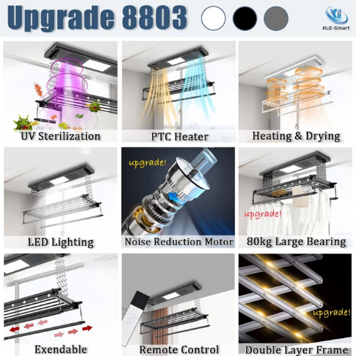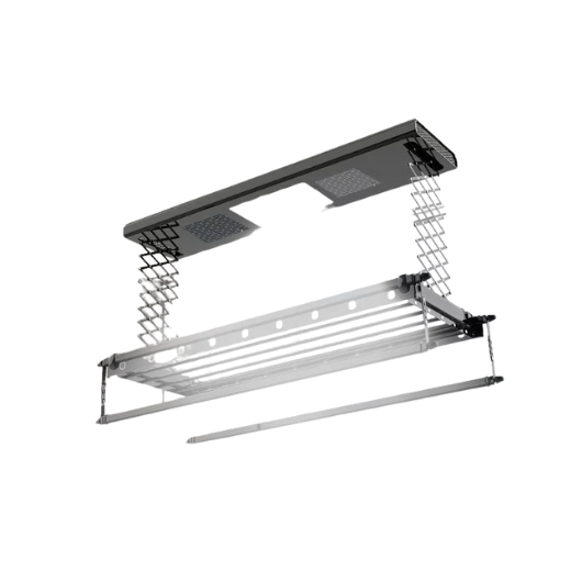 Electric lifting: the clothes drying rod can be raised, lowered and paused by remote control