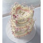 Handcrafted with soft pastel tones, delicate pearls, edible butterflies, and floral accents, this beautiful heart-tiered cake is both feminine and luxurious. Whether you prefer a single tier or a grand two-tier display, it’s the ultimate centrepiece for an unforgettable 21st birthday celebration.