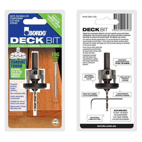 - Bordo Deck Bits are fully adjustable to suit your specific fastener, timber species or custom application.
