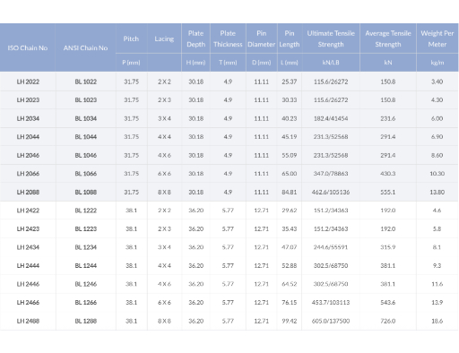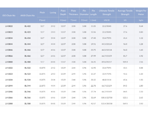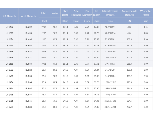 - It Offers Great Length Consistency. Because it is constructed from specific components, the BL series leaf chain has a consistent and reliable pitch and length.
