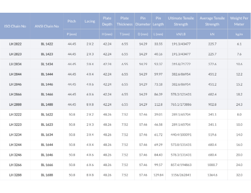 - It Is the Only Leaf Chain Included in Two Standards. While LL chains are only in the ISO standard, AL chains are not regulated and have dimensions that vary between manufacturers. However, BL leaf chain is included in the international chain standards ISO4347 and BS29.8.