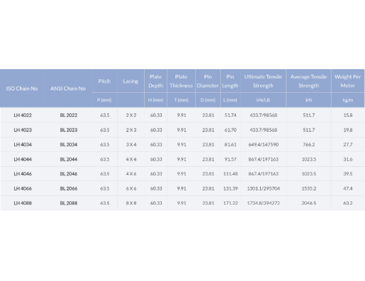 - It Is Built for a Greater Bearing Area and Longer Working Life. Because the BL series leaf chain offers the option of odd lacing (4×6, for example), it increases bearing areas by 66%, resulting in a prolonged working life as the load is spread across more links.