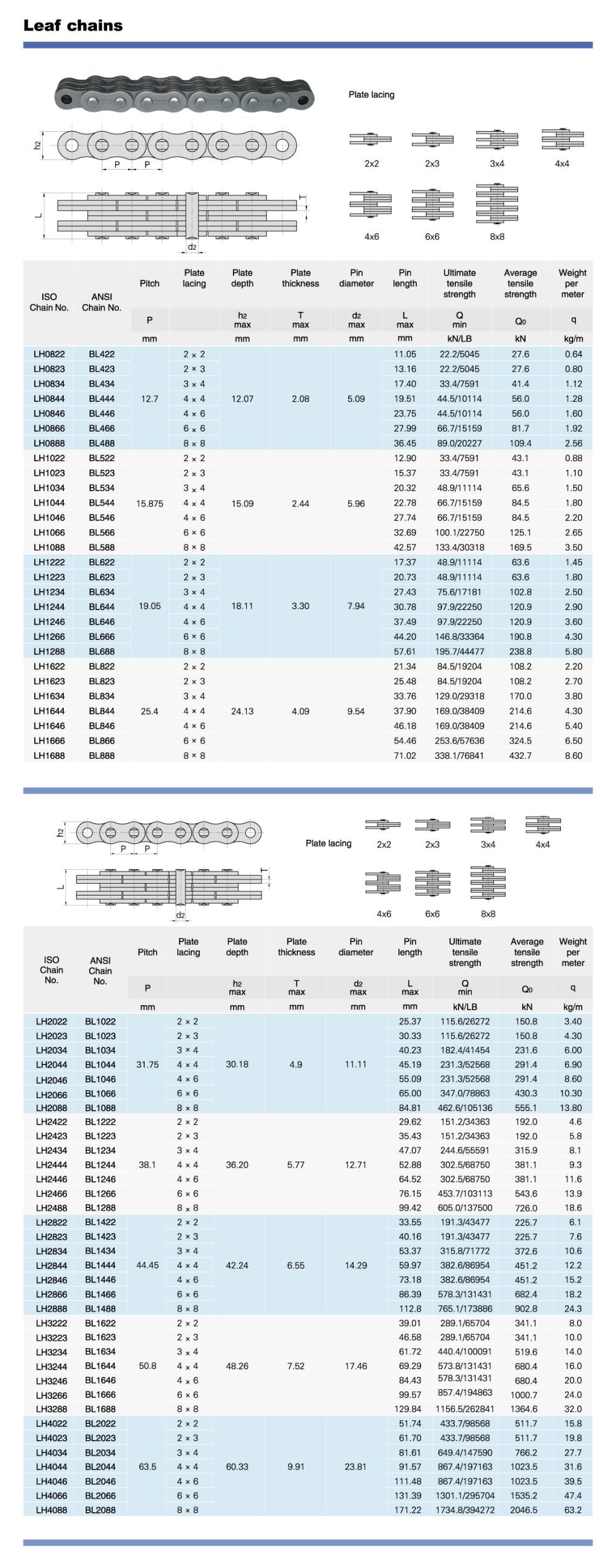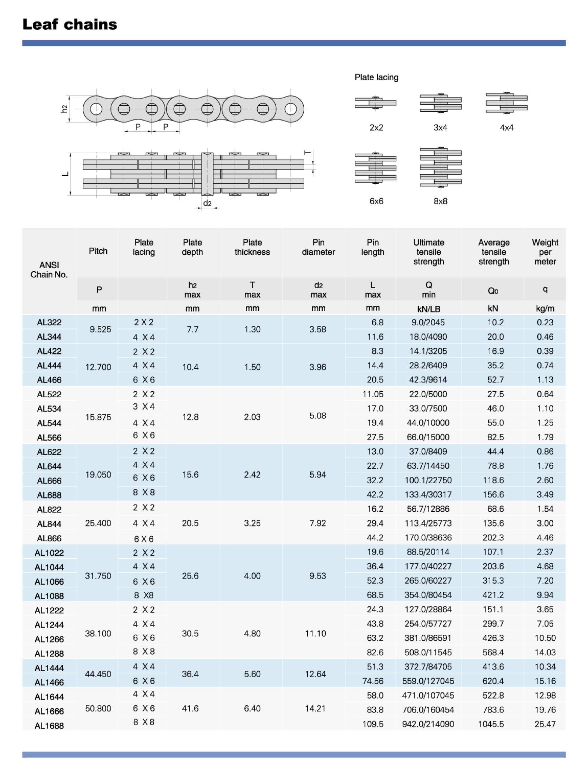 - It Is the Only Leaf Chain Included in Two Standards. While LL chains are only in the ISO standard, AL chains are not regulated and have dimensions that vary between manufacturers. However, BL leaf chain is included in the international chain standards ISO4347 and BS29.8.