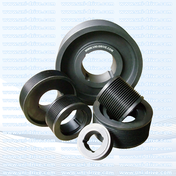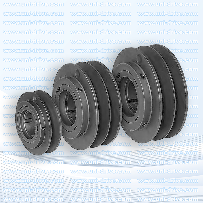 Taper-Bushing Pulleys – Easy mounting/removal with strong, secure shaft grip.