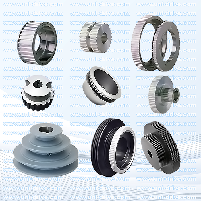 Extensive pulley range: Vee-belt, Timing, Poly-rib, Flat, Variable Adjustable Pitch.
